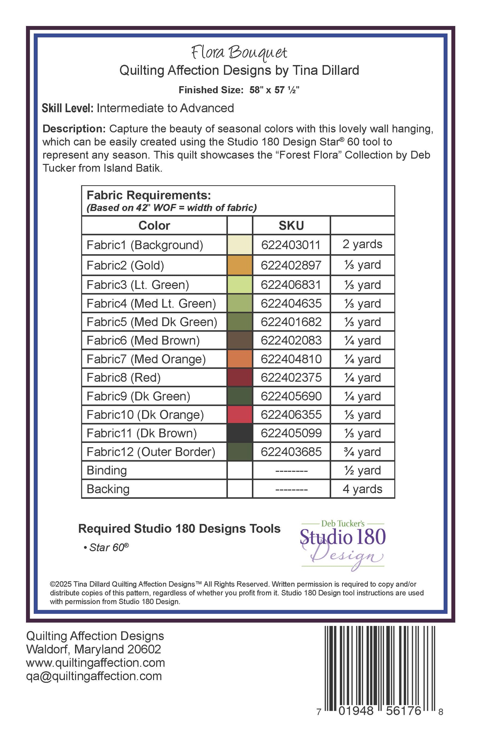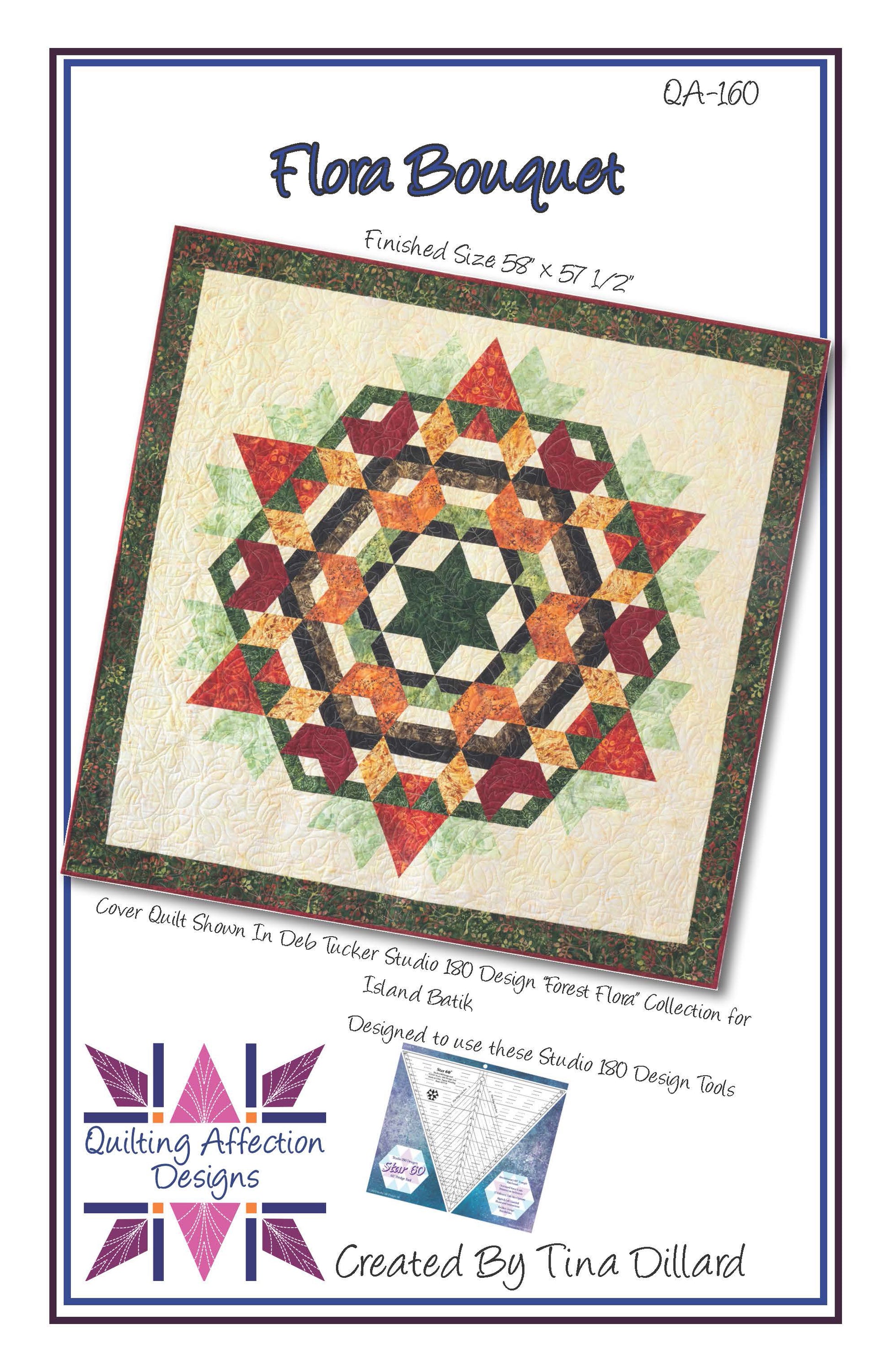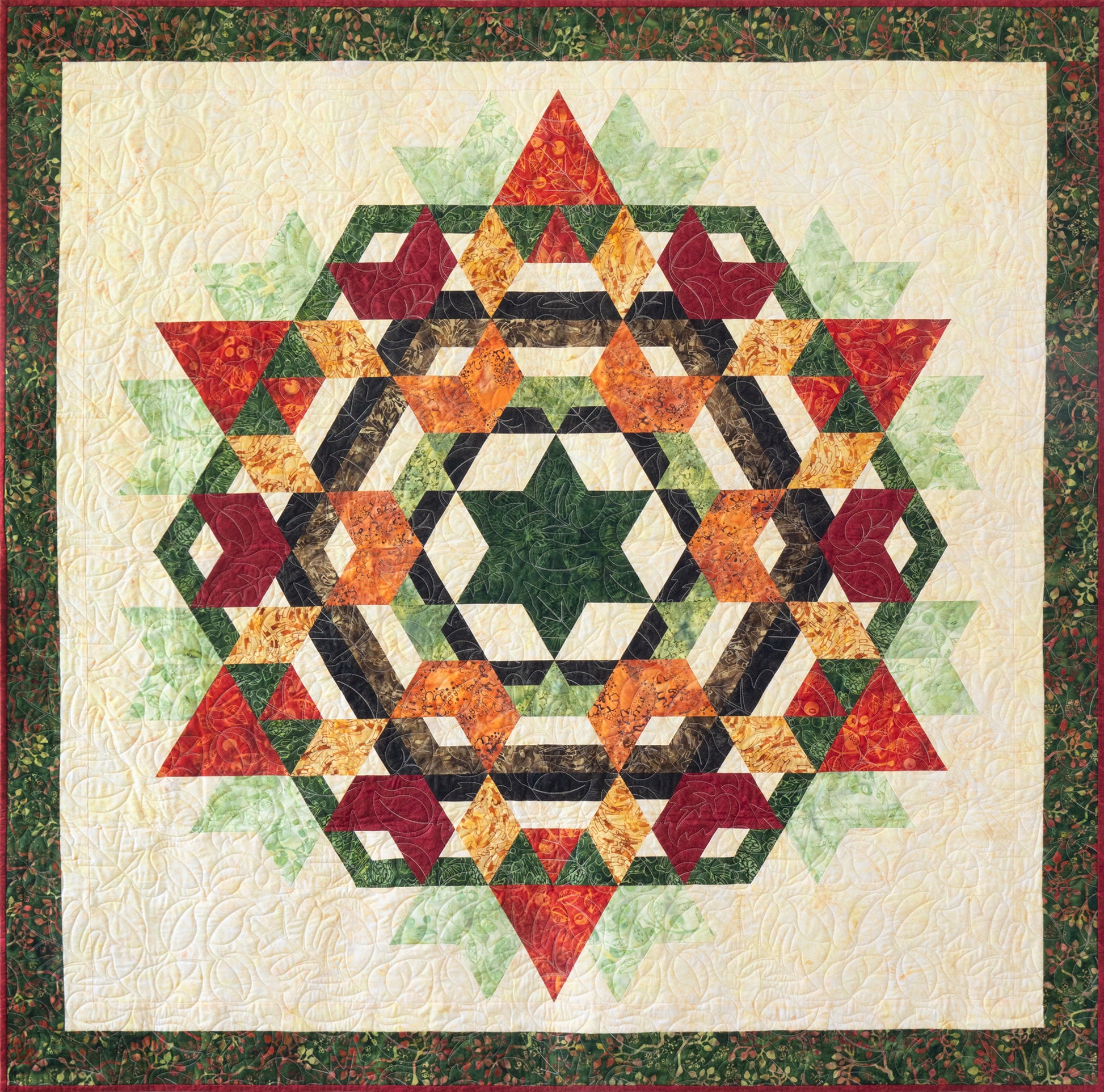 Capture the beauty of seasonal colors with this lovely wall hanging, which can be easily created using the Studio 180 Design Star® 60 tool to represent any season. This quilt showcases the “Forest Flora” Collection by Deb Tucker Studio 180 Design for Island Batik.