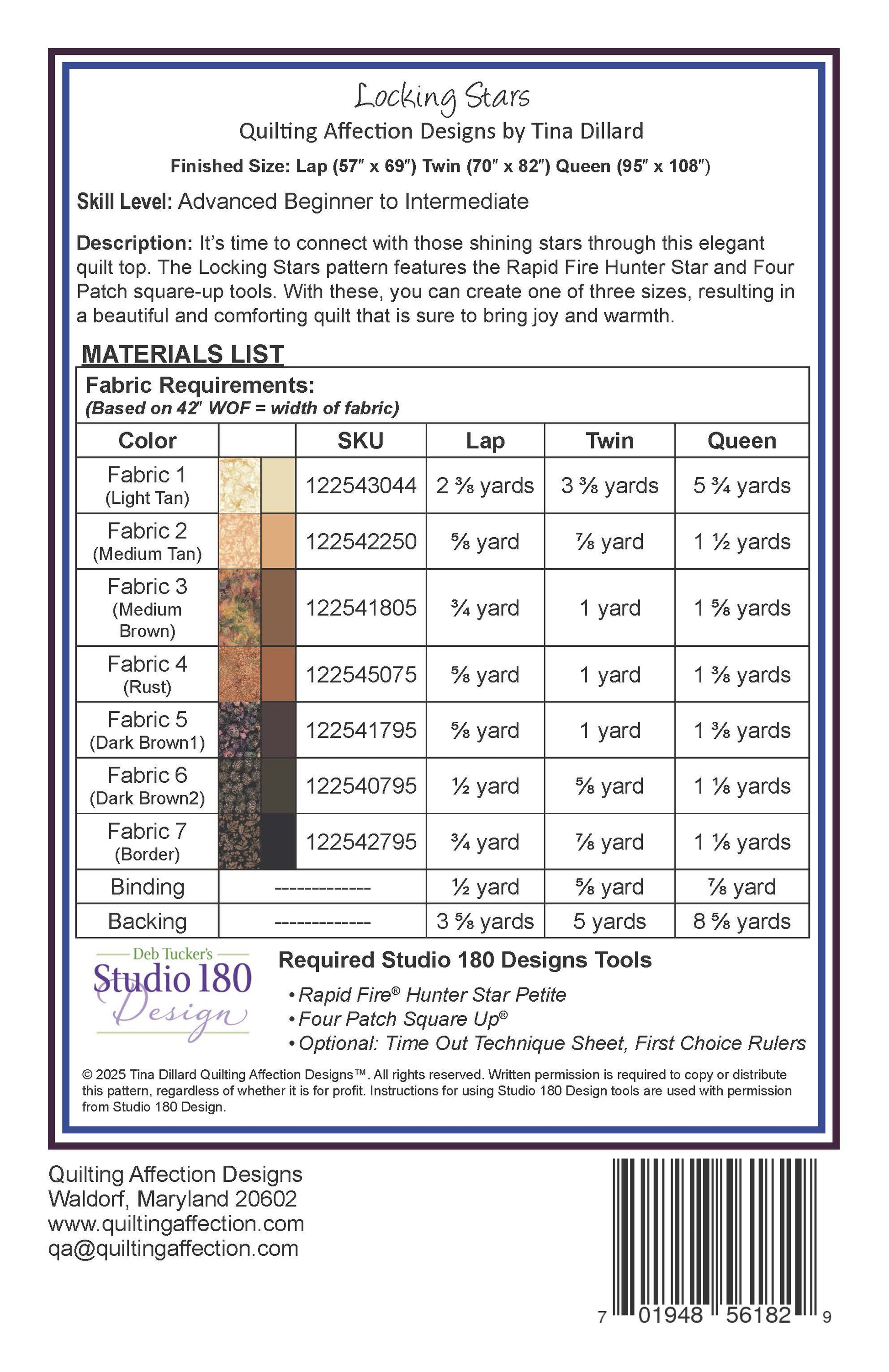It’s time to connect with those shining stars through this elegant quilt top. The Locking Stars pattern features the Rapid Fire Hunter Star and Four Patch square-up tools. With these, you can create one of three sizes, resulting in a beautiful and comforting quilt that is sure to bring joy and warmth.